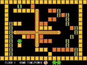 緑色の自機を操作し、フレームに敵をぶつけて破壊するアクションゲームです。