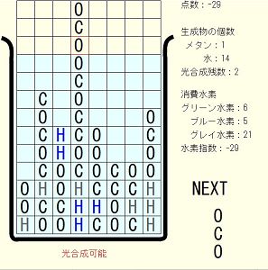 【概要】 二酸化炭素を水素によるメタネーションにより、 メタンと水を作るテトリス。