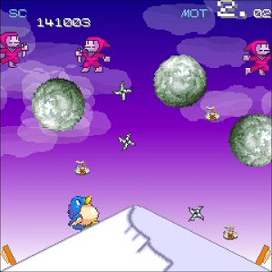 忍者YASHIKIの手裏剣や雪玉を避けつつ空から落ちてくるお年玉をキャッチ!